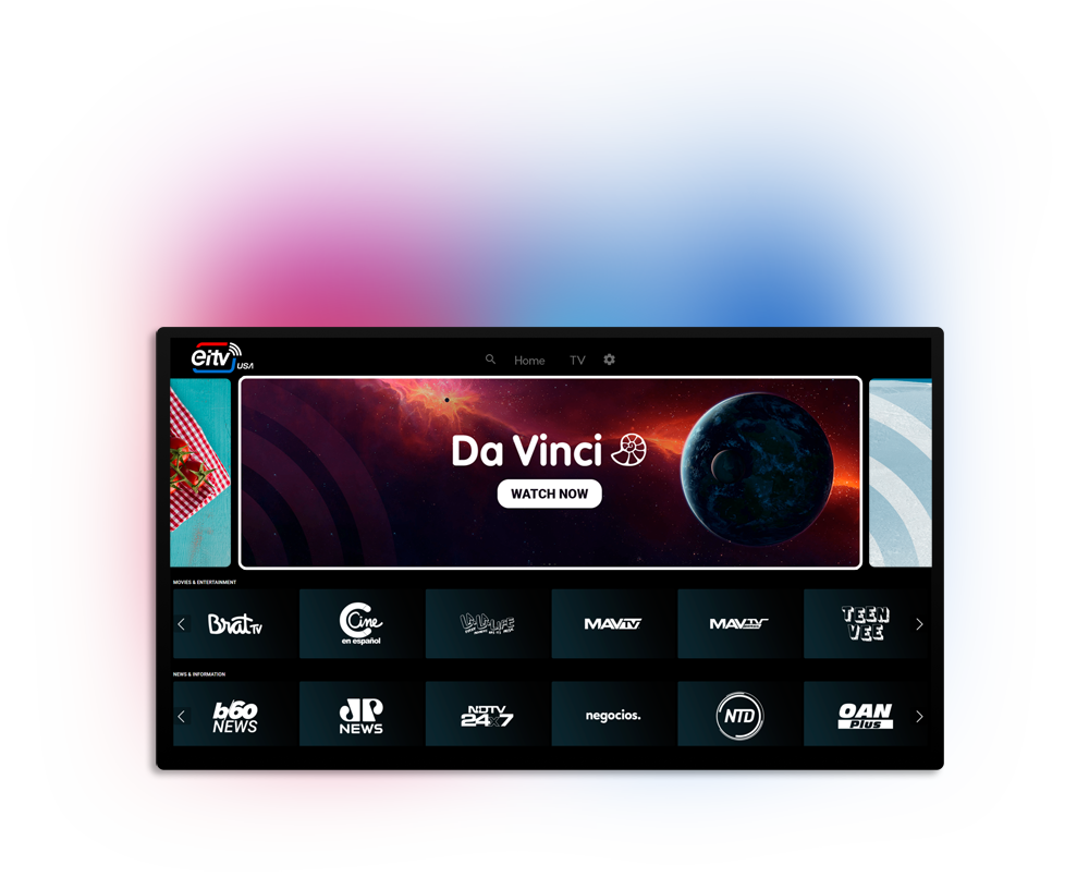 Looking to offer Free Live TV under your brand? EiTV USA provides a white-label solution for: